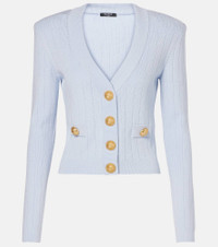Product Details - Material: 83% viscose, 17% polyester - Care instructions: specialist clean - Made in France - Designer color name: Bleu Pale - Material II: 83% viscose, 17% polyester - Closure: buttoned front - Item number: P01008006 Size & Fit - True to size - Oversized shoulders - Shoulder pad inserts - Fitted - Slightly stretchy fabric - Slightly cropped - The model seen in the picture is 178cm-5'10" and wearing a size FR 34
