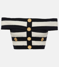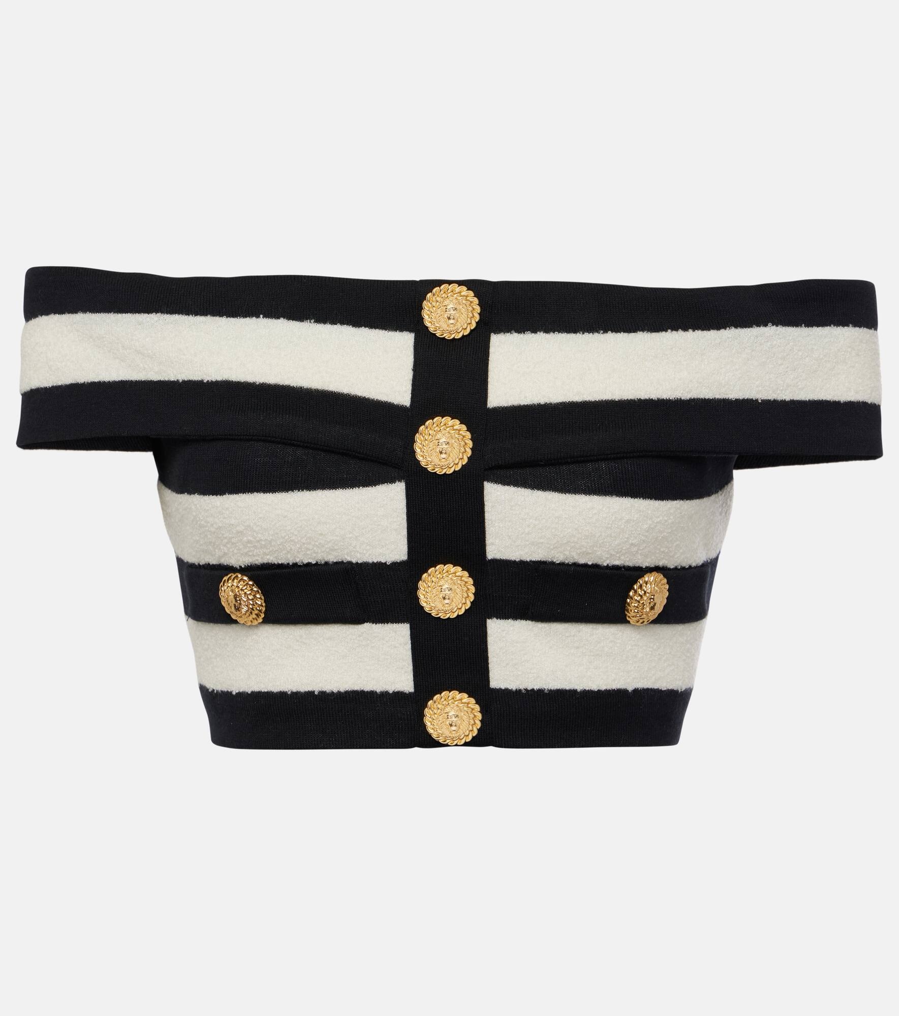 Product Details - Material: 49% acrylic, 30% cotton, 21% polyamide - Care instructions: dry clean - Made in Bulgaria - Designer color name: Noir/Blanc - Item number: P00953423 Size & Fit - True to size - Off-the-shoulder - Fitted - Cropped - The model seen in the picture is 178cm-5'10" and wearing a size FR 36