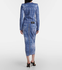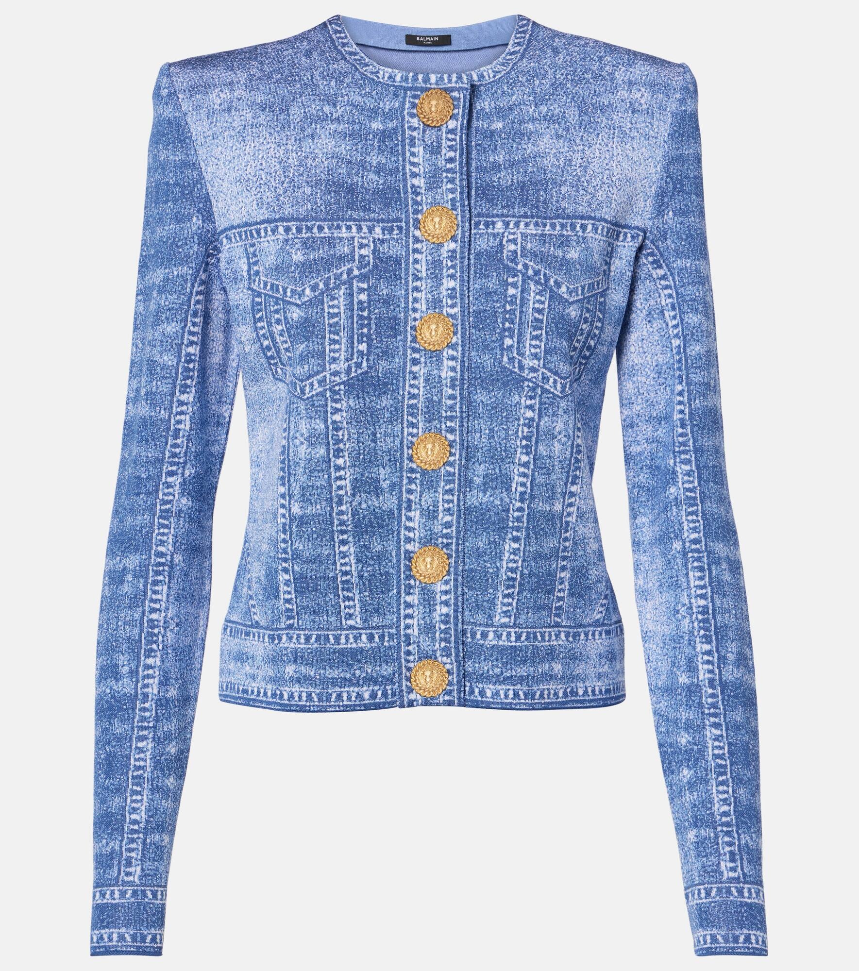 Jacquard knit cardigan with denim effect