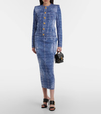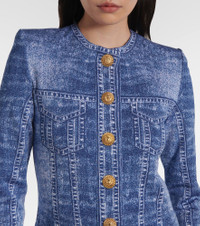 Product Details - Material: 84% viscose, 8% polyester, 8% polyamide - Care instructions: dry clean - Made in France - Designer color name: Bleu Jean - Closure: snap-buttoned fastenings - Item number: P01008011 Size & Fit - True to size - Shoulder pad inserts - Cinched waist - Stretchy fabric - Slightly cropped - The model seen in the picture is 178cm-5'10" and wearing a size FR 34