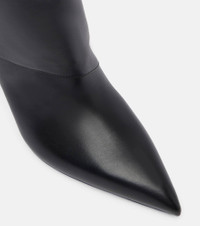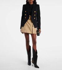 The Twist knee-high boots from Balmain feature a folded, gaiter-style upper and a sculptural 95 mm heel with a cutout detail for a bold look. This pointed-toe pair is finished with the house’s gold-toned PB logo. Product Details - Upper: calf leather - Lining: leather - Sole: leather insole and sole - Toe shape: pointed toe - Made in Italy - Includes: shoe box - Designer color name: Opa Noir - Item color: black - Item number: P01044133 Size & Fit - True to size - Narrow around the ankle - Half sizes please take the next size up - European sizes - 9cm-3.5" heel (size EU 38)
