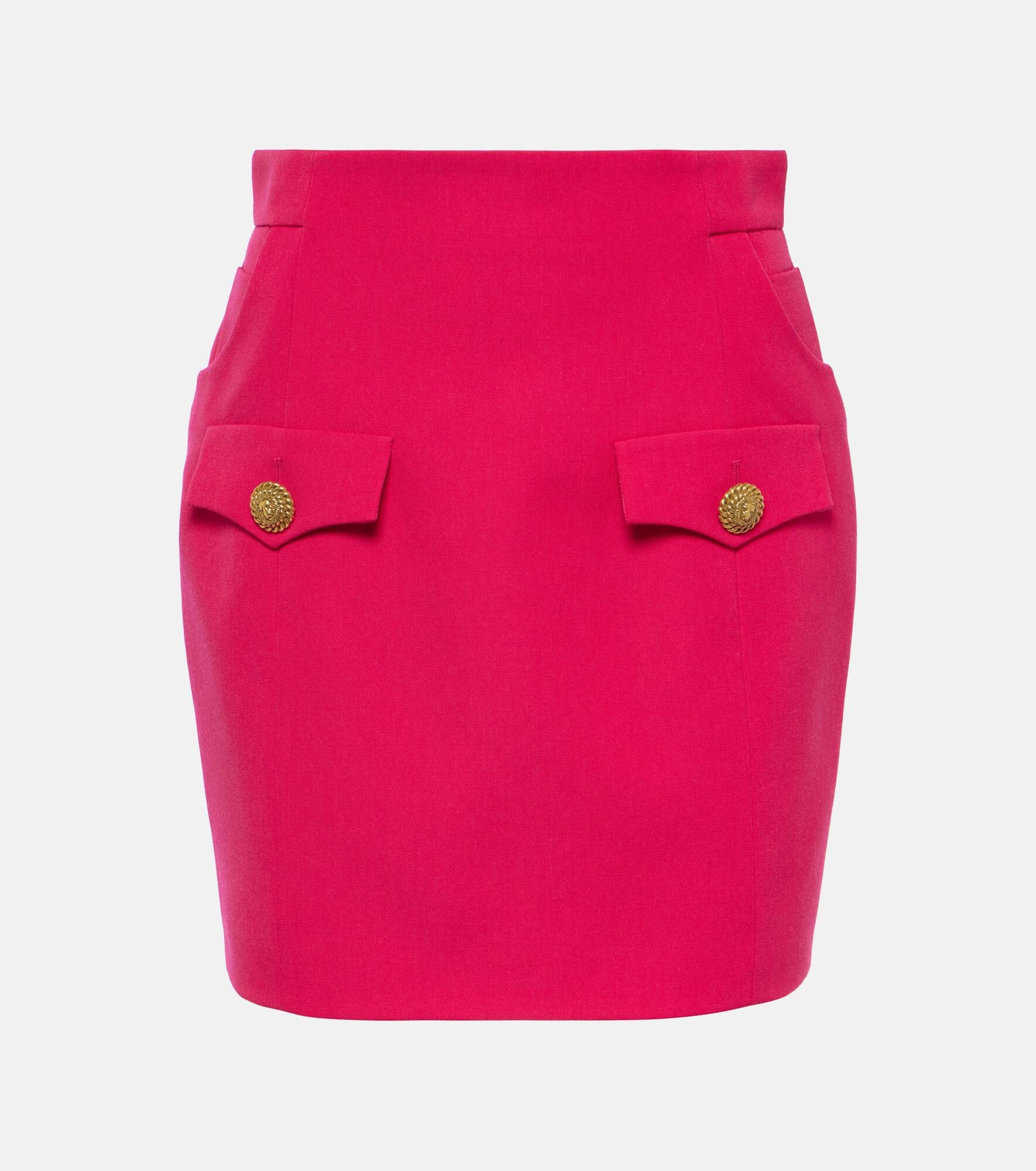 button-embellished virgin-wool miniskirt