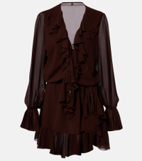 Entrance-making beachwear from Tel Aviv-based brand Bananhot is a requisite for glamorous sun-drenched escapes. Made from fluid semi-sheer fabric, the Bellen minidress features a lace-up neckline, ruffled trims, and long poet sleeves. Product Details - Material: 100% polyester - Care instructions: hand wash - Made in Thailand - Color: brown - Designer color name: Dk Brown - Item color: brown - Item number: P01136781 Size & Fit - True to size - Loose fit, elasticated waist - Non-stretchy fabric - The model seen in the picture is 178cm-5'10" and wearing a size XS