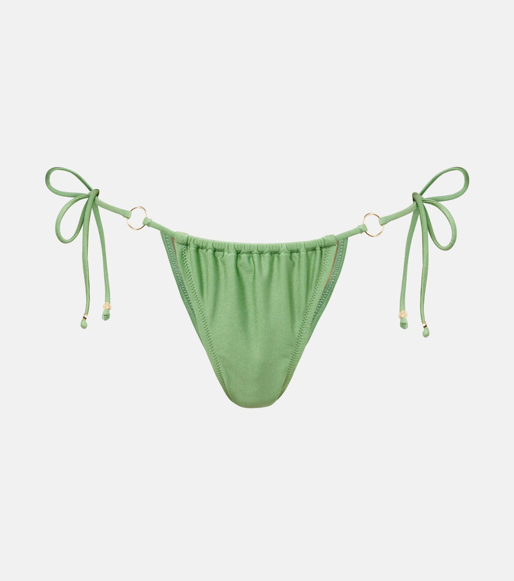 Bananhot's bold swimwear is certain to give you an instant boost of confidence at the beach. These bikini bottoms are finished with ring detailing and slim self-ties for an adjustable fit. Product Details - Material: 80% nylon, 20% elastane - Care instructions: hand wash - Made in Thailand - Designer color name: Sage Green - Item color: green - Item number: P01041429 Size & Fit - True to size - Minimal coverage - High-cut leg - The model seen in the picture is 178cm-5'10" and wearing a size XS