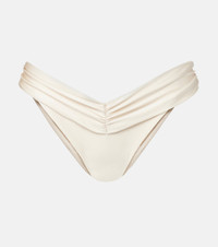 Bananhot's bold swimwear is certain to give you an instant boost of confidence at the beach. The Jasmin bikini bottoms boast a V-silhouette and are accented with ruched detailing. Product Details - Material: 80% nylon, 20% elastane - Care instructions: hand wash - Made in Thailand - Designer color name: Butter Cream - Item color: beige - Item number: P01041424 Size & Fit - True to size - Minimal coverage - High-cut leg - The model seen in the picture is 178cm-5'10" and wearing a size XS