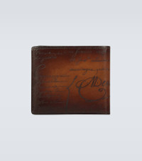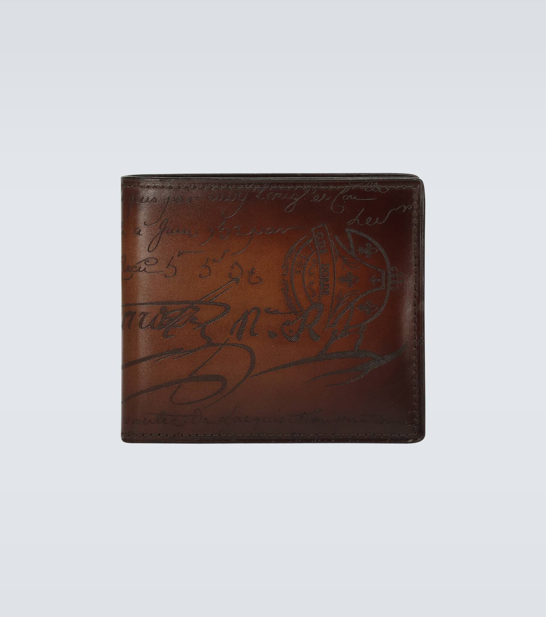 Made from 100% leather, this cardholder from Berluti has three flat pockets, six card slots, and features elegant type print debossed on the front. Product Details - Internal details: Card slots, bill slots - Material: calf leather - Made in Italy - Item number: P00481358 Size & Fit - Height 9.5cm-3.5" - Width 11.5cm-4.5" - Depth 2cm-1"