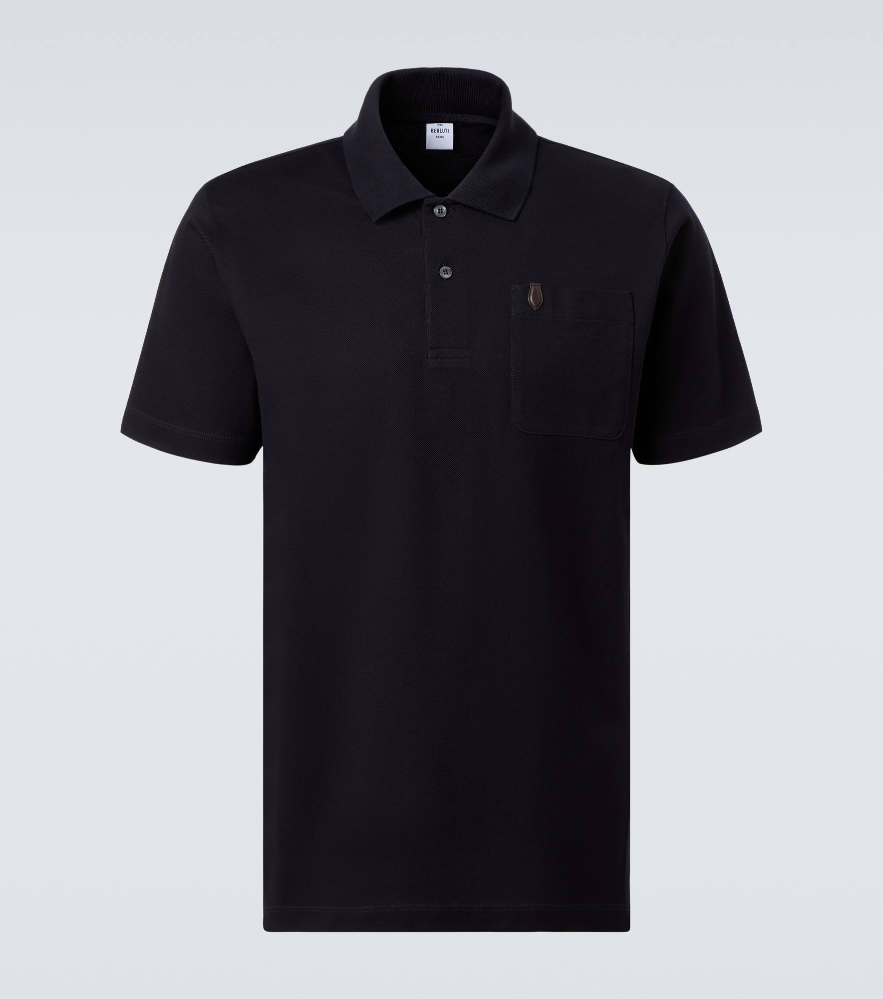 Daily looks are polished when sporting this polo shirt from Berluti. The classic design is crafted from cotton and is topped with a patch pocket on the front. Product Details - Material: 100% cotton - Care instructions: machine wash at 30 degrees - Made in Italy - Designer color name: Marine - Item color: blue - Details: 80% cotton, 20% calf leather - Collar: polo collar - Closure: partially button-down - Side slits - Item number: P01067200 Size & Fit - True to size - Straight fit - Slightly stretchy fabric - Falls below the hip - Height of model is 189cm-74.5" and wears a size L