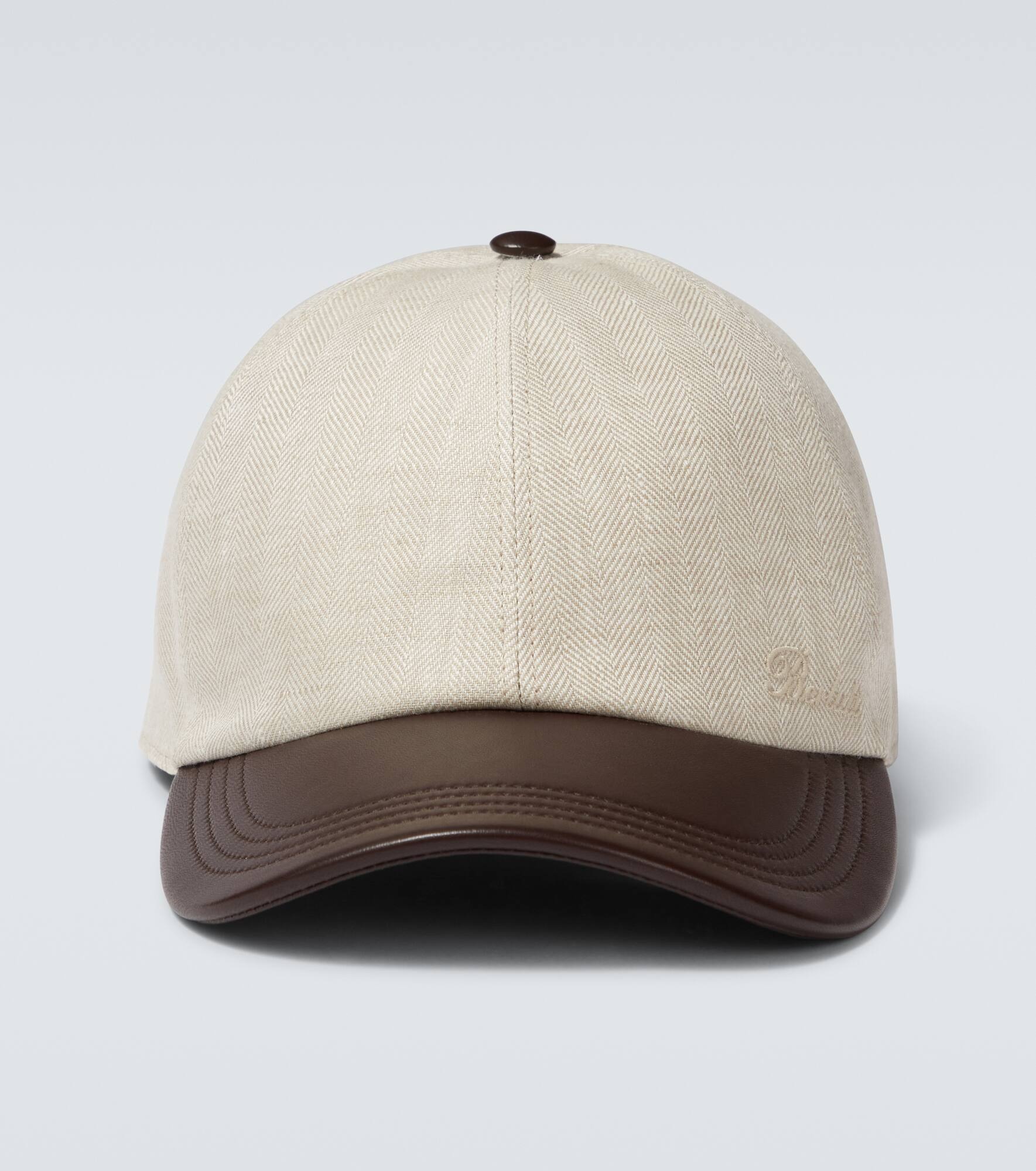 Linen leather-trimmed baseball cap