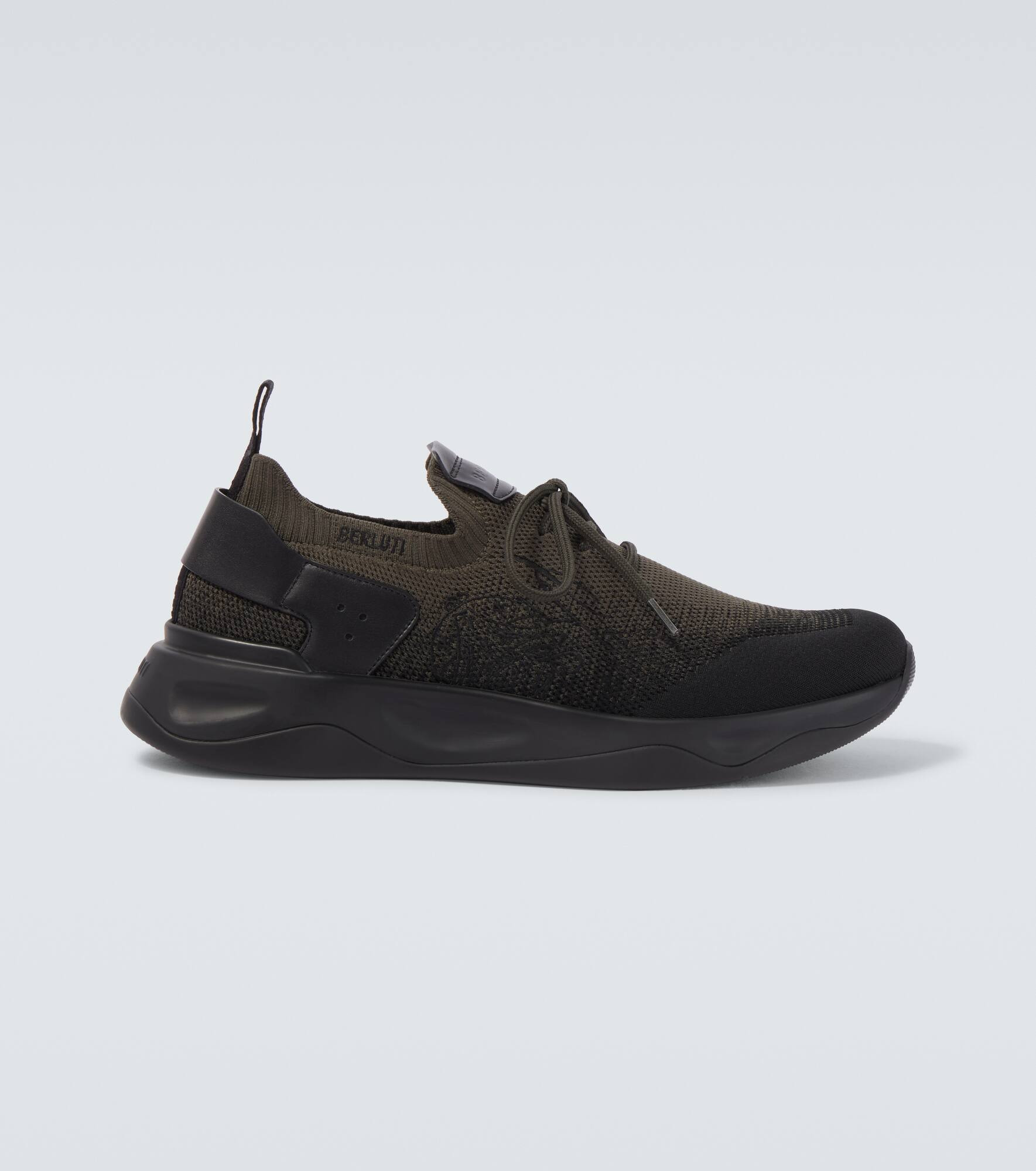 Opt for comfort and ease with the Shadow sneakers form Berluti. Set on padded insoles, this pair features lightweight knitted uppers, supple leather trims, and subtle embroideries. Product Details - Upper: fabric - Lining: fabric - Sole: leather insole, rubber sole - Toe shape: round toe - Made in Italy - Includes: shoe box, dust bag, extra laces - Designer color name: Gradiant Dark Black + Green - Item color: black, green - Closure: lace-up - Item number: P01067212 Size & Fit - True to size - UK sizes