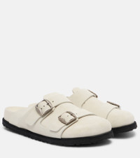 Birkenstock 1774 is a heritage brand whose shoe styles fit in every wardrobe. Made in Germany from white suede with silver-toned buckle fastenings, the 222 West clogs combine the brand's iconic Boston silhouette with its signature Arizona straps. Product Details - Upper: calf leather (suede) - Lining: leather - Sole: leather insole, rubber sole - Toe shape: round toe - Made in Germany - Includes: shoe box, dust bag - Designer color name: Cream - Item color: white - Item number: P01102973 Size & Fit - True to size - Half sizes please take the next size up - European sizes - Birkenstock width: normal feet - 2cm-1" platform (size EU 38)