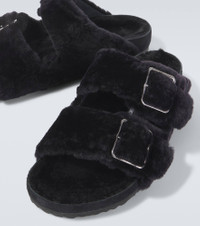 Product Details - Upper: suede - Lining: shearling - Sole: shearling insole, cork sole - Toe shape: round open toe - Made in Germany - Includes: shoe box - Designer color name: Black - Item number: P00994613 Size & Fit - True to size - Half sizes please take the next size down - European sizes - Birkenstock width: normal feet