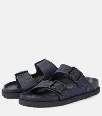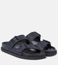 Arizona Luxe leather-trimmed raffia sandals