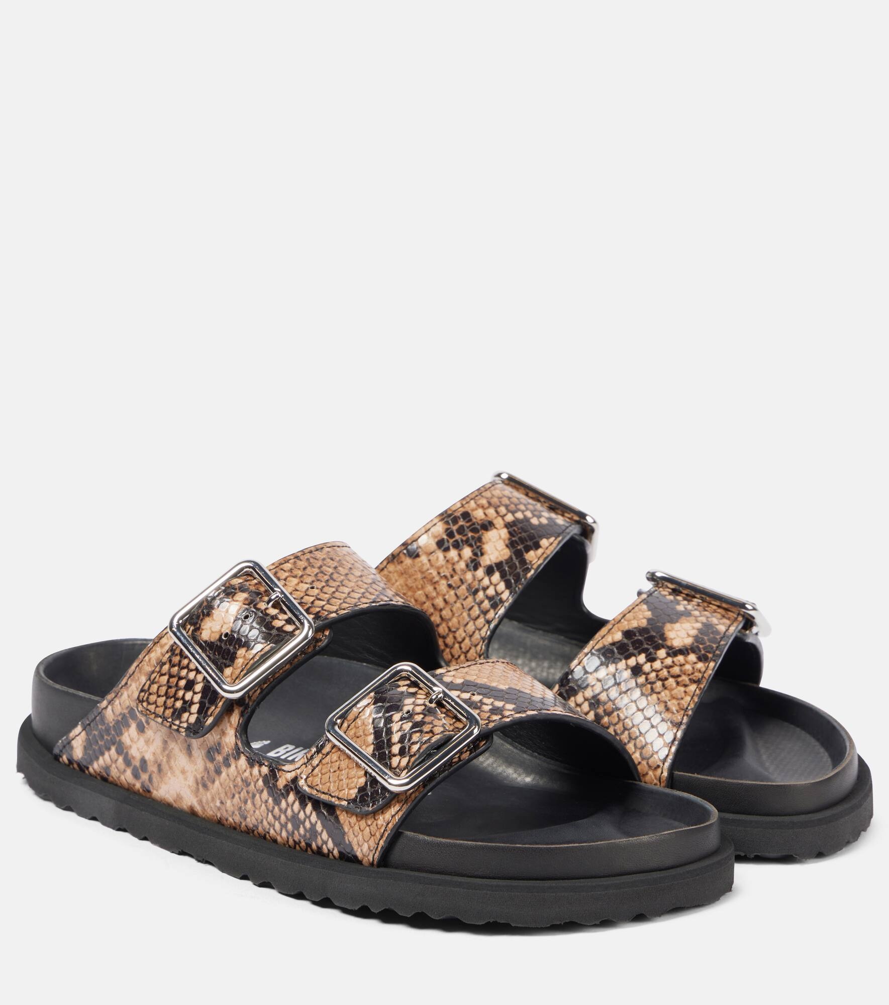 Product Details - Upper: leather - Lining: cork - Sole: leather insole, rubber sole - Toe shape: round open toe - Made in Germany - Includes: shoe box, dust bag - Designer color name: Natural Snake - Item number: P01014605 Size & Fit - True to size - Half sizes please take the next size up - European sizes - Birkenstock width: slender feet - 1,5cm-0.5" platform (size EU 38) - 2cm-1" wedge heel (size EU 38)