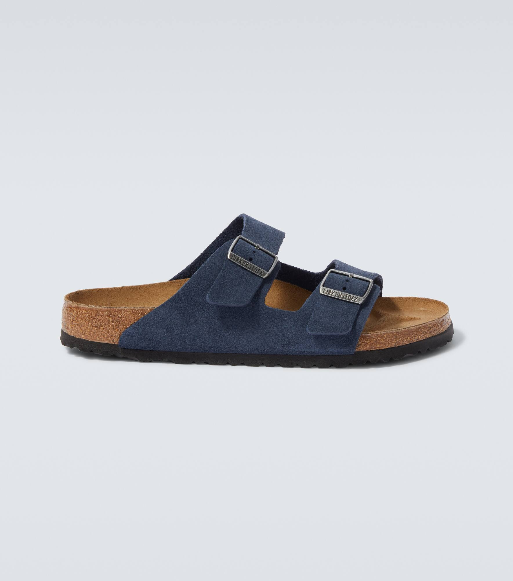 Birkenstock's Arizona sandals are expertly crafted in Germany from suede with the classic two-strap design. This pair gives an evergreen look, guaranteeing comfort and durability thanks to its high-quality manufacturing. Product Details - Upper: leather (suede) - Lining: leather - Sole: leather insole, cork and rubber sole - Toe shape: round open toe - Made in Germany - Includes: shoe box - Designer color name: New Navy - Item color: blue - Item number: P01081117 Size & Fit - True to size - Half sizes please take the next size down - European sizes - Birkenstock width: narrow feet