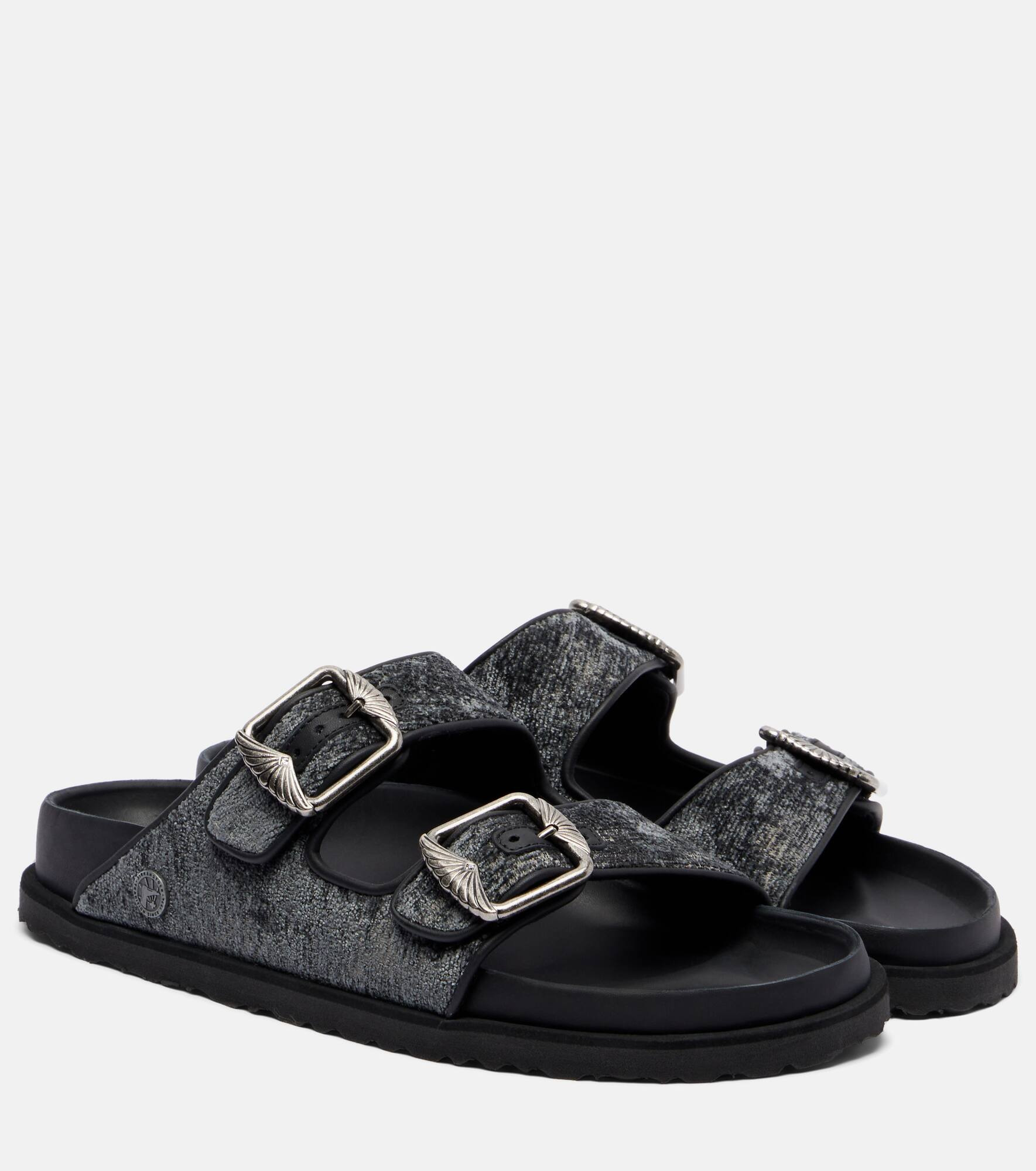 Instantly recognizable for their dual buckled straps, the Arizona slides from Birkenstock 1774 have transcended generations as the ultimate off-duty essential. This pair is made from grey velvet with anatomically-shaped cork-latex footbeds. Product Details - Upper: fabric - Lining: fabric - Sole: leather insole, cork and rubber sole - Toe shape: round open toe - Made in Germany - Includes: shoe box, dust bag - Designer color name: Black - Item color: black - Trim: leather - Hardware color: antique silver - Item number: P01102966 Size & Fit - True to size - Half sizes please take the next size up - European sizes - Birkenstock width: normal feet - 2cm-1" platform (size EU 38)