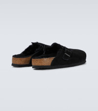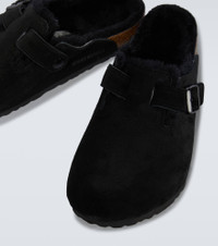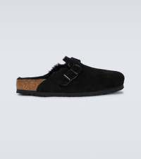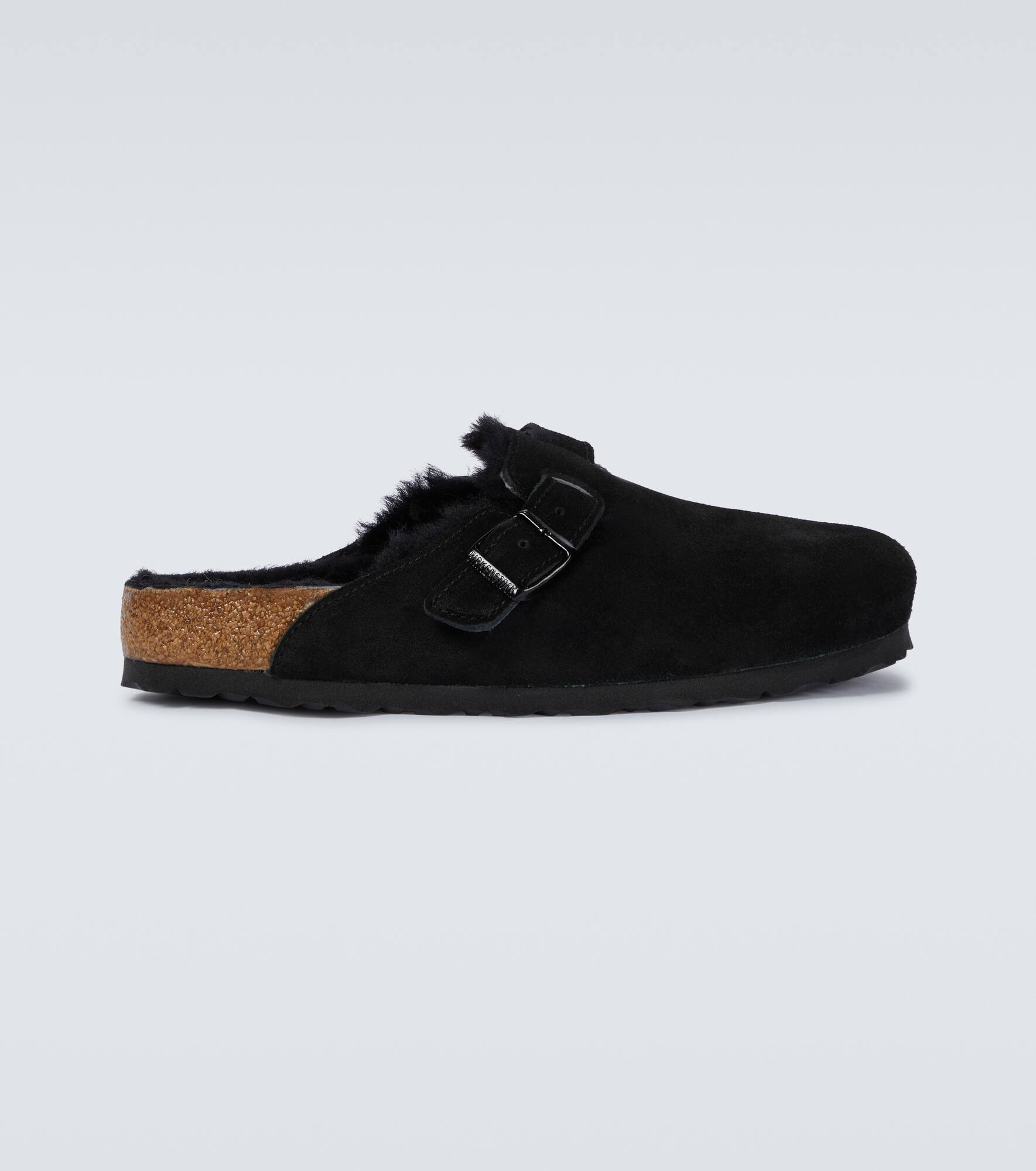 Featuring suede uppers with shearling lining in black, these BIRKENSTOCK Men clogs have a molded cork midsole for a comfortable and lightweight step. Product Details - Lining: shearling - Toe shape: round toe - Upper: shearling - Sole: shearling insole, rubber sole - Made in Germany - Designer color name: Schwarz - Item number: P00592964 Size & Fit - True to size - Half sizes please take the next size up - European sizes - Birkenstock width: narrow feet