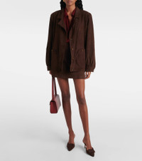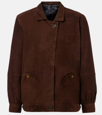 Blaze Milano fuses traditionally feminine and masculine codes to create inspiring styles with an enduring appeal. The Cleo bomber jacket is made in Italy from supple suede and features a sophisticated lapel and chic rounded pockets. Product Details - Material: 100% leather - Care instructions: dry clean - Made in Italy - Designer color name: Chocolate - Item color: brown - Closure: buttoned front - Pockets: side slit pockets, buttoned pockets - Lining: 100% viscose - Item number: P01023396 Size & Fit - True to size - Shoulder pad inserts - Designed for a loose fit - Non-stretchy fabric - Falls below the hip - The model seen in the picture is 178cm-5'10" and wearing a size 1