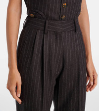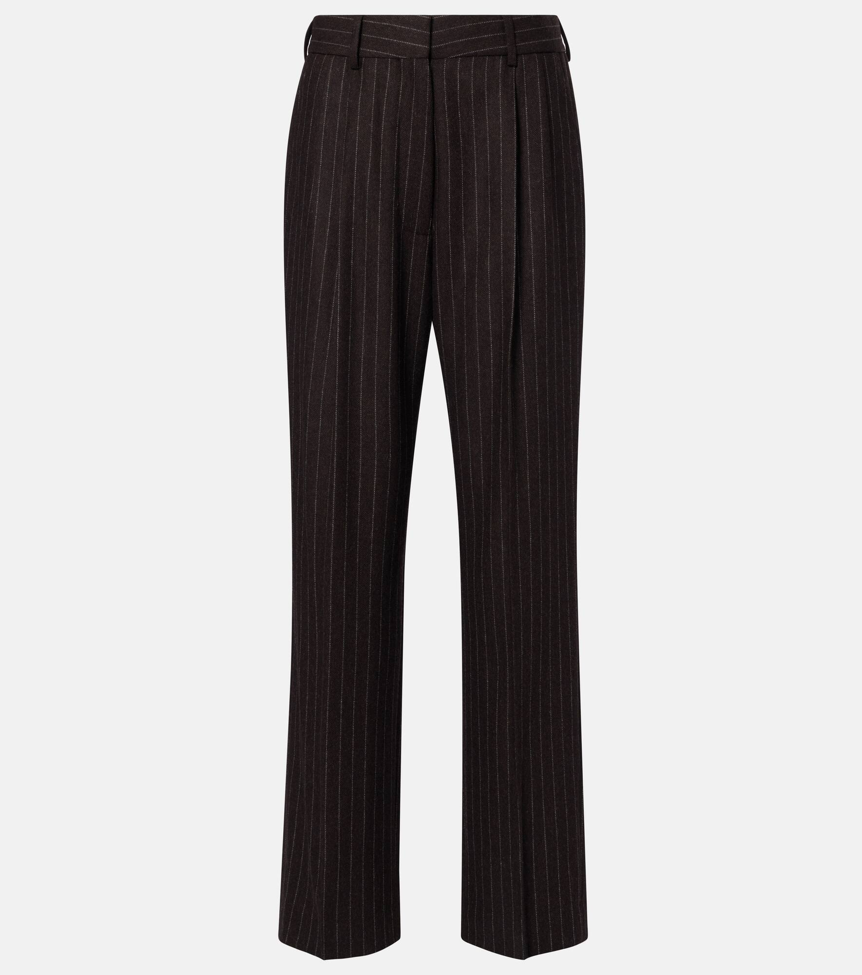 Blaze Milano fuses traditionally feminine and masculine codes to create inspiring styles with an enduring appeal. Detailed with all-over pinstripes, the Fox straight pants are Italian-crafted from wool and cashmere. Product Details - Material: 92% wool, 8% cashmere - Care instructions: dry clean - Made in Italy - Designer color name: Choco - Item color: brown - Lining: 100% viscose - Closure: zip, hook, and button fastening - Belt loops - Pockets: slant pockets, back pocket - Double pleat - Item number: P01059408 Size & Fit - True to size - Non-stretchy fabric - Straight leg - The model seen in the picture is 178cm-5'10" and wearing a size 1