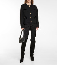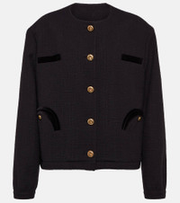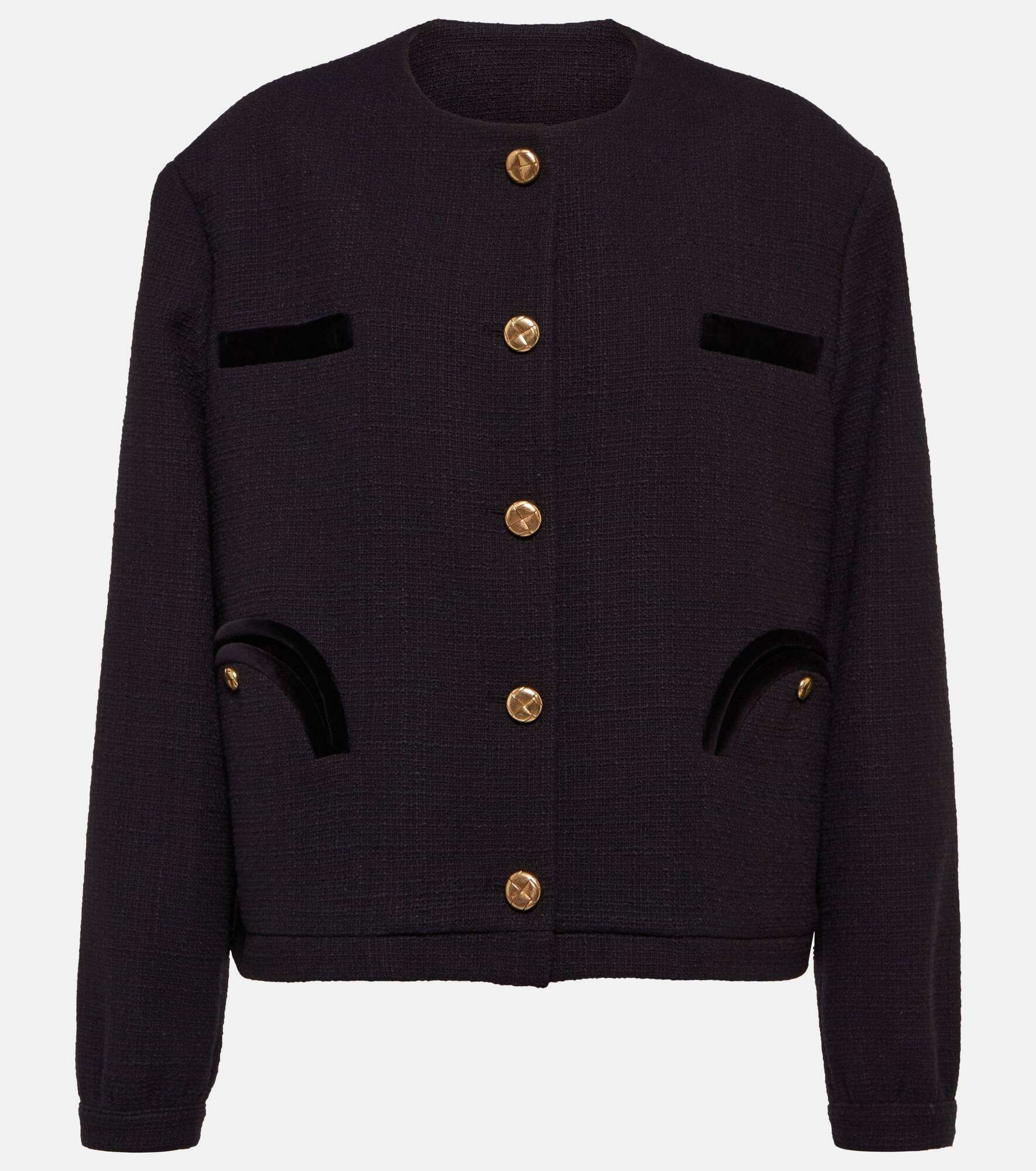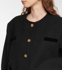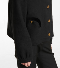 Blazé Milano's Gliss jacket is both sporty and chic. Borrowing design elements from bombers and bolero styles, it's made from cotton-blend bouclé with golden knot buttons and signature "Smiley" pockets. Product Details - Sleeve lining: 40% silk, 60% acetate - Comes with garment bag - Lining: partially lined, 100% viscose - Closure: buttoned front - Care instructions: dry clean - Buttoned cuffs - Shoulder pads - Material II: 100% cotton - Made in Italy - Designer color name: Black (Col. Black) - Material: 5% other fibres, 68% cotton, 27% polyester - Pockets: buttoned pockets, internal pocket, breast pockets - Item number: P00639205 Size & Fit - True to size - Oversized shoulders - Shoulder pad inserts - Designed for a loose fit - Mid-weight material - Falls below the hip - The model seen in the picture is 178cm-5'10" and wearing a size 1