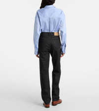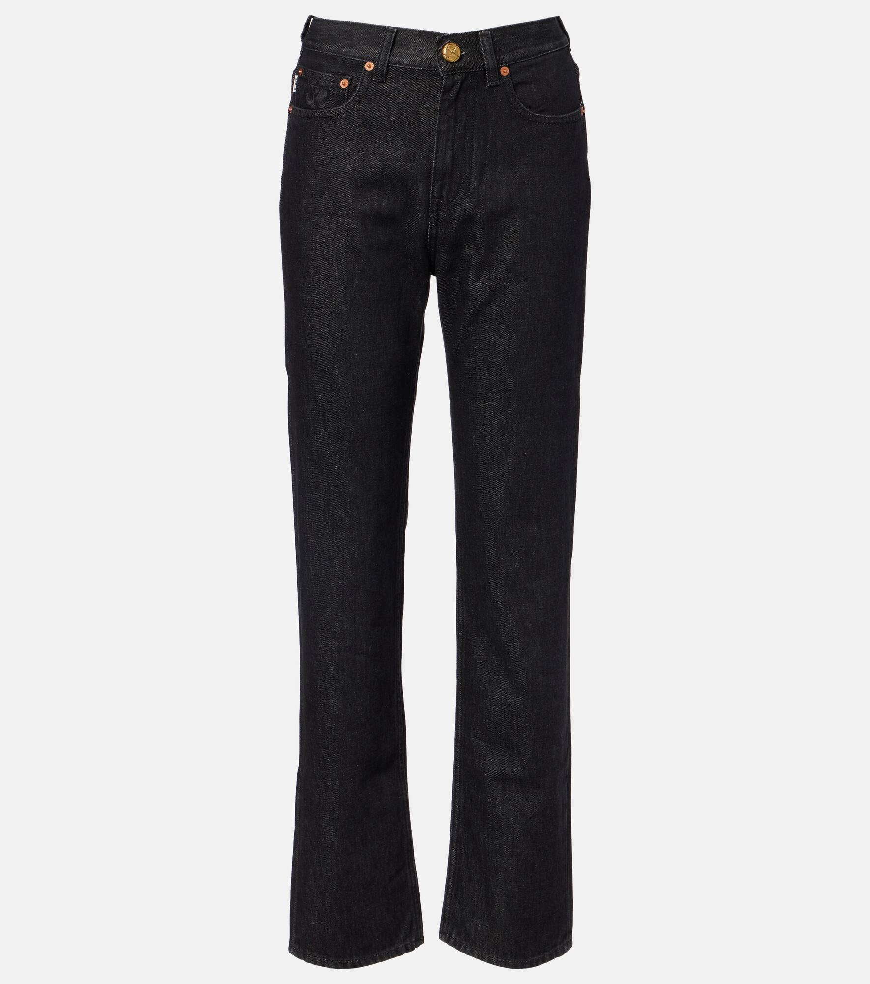 Blaze Milano fuses traditionally feminine and masculine codes to create inspiring styles with enduring appeal. The Paso jeans are cut to a straight silhouette with a high-rise waistline and two back pockets stitched with the signature "Smiley" design. Product Details - Material: 100% cotton - Care instructions: machine wash at 30 degrees - Made in Italy - Designer color name: Black - Item color: black - Lining: 65% polyester, 35% cotton - Closure: zipper fly, button fastening - Pockets: five pockets - Belt loops - Item number: P01086246 Size & Fit - True to size - Non-stretchy fabric - Straight leg - High-rise - The model seen in the picture is 178cm-5'10" and wearing a size 1