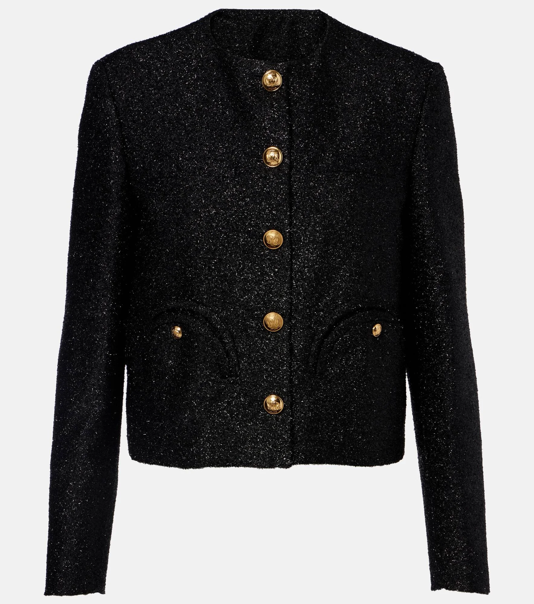 Blaze Milano fuses traditionally feminine and masculine codes to create inspiring styles with enduring appeal. The Riva jacket is crafted from a shimmering fabric and features the brand's signature "Smiley" pockets. Product Details - Material: 100% polyamide - Care instructions: dry clean - Made in Italy - Color: black - Designer color name: Black - Lining: 100% viscose - Sleeve lining: 100% viscose - Hardware color: gold - Closure: single-breasted - Pockets: breast pocket, buttoned pockets, internal pockets - Cuff: three buttons - Includes: garment bag - Item number: P01137826 Size & Fit - True to size - Shoulder pad inserts - Straight fit - Non-stretchy fabric - Slightly cropped - The model seen in the picture is 178cm-5'10" and wearing a size 1