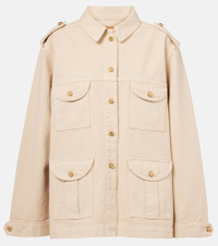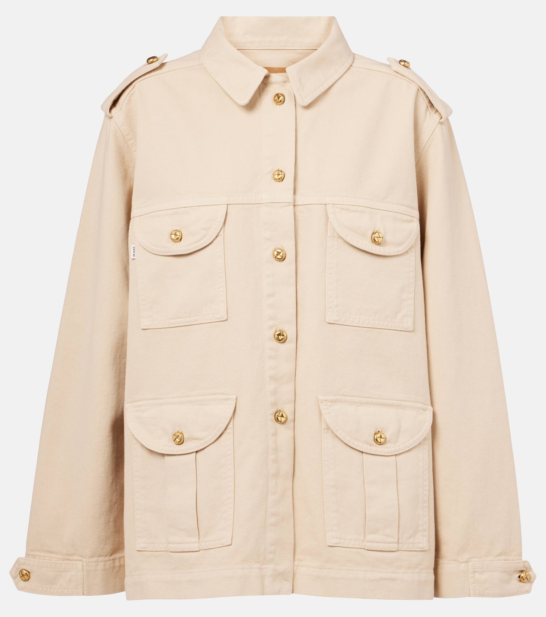 Blaze Milano fuses traditionally feminine and masculine codes to create inspiring styles with an enduring appeal. Made from cotton denim, the Sahariana jacket is a safari-inspired style with multiple pockets. Designed for a relaxed fit, this piece is completed with shoulder epaulettes and buttoned cuffs. Product Details - Material: 100% cotton - Care instructions: dry clean - Made in Italy - Designer color name: Almond - Item color: beige - Closure: button-down - Pockets: breast pockets, buttoned pockets - Item number: P01023361 Size & Fit - Fits large to size - we recommend trying one size smaller - Dropped shoulders - Oversized - Non-stretchy fabric - Falls below the hip - The model seen in the picture is 178cm-5'10" and wearing a size 0