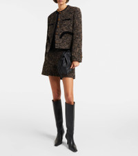 Blaze Milano fuses traditionally feminine and masculine codes to create inspiring styles with an enduring appeal. Crafted from wool-blend tweed, the Shamo jacket is designed to a structured, slightly cropped silhouette with signature curved pockets. Product Details - Material: 44% wool, 38% alpaca wool, 18% polyamide - Care instructions: dry clean - Made in Italy - Designer color name: Brown - Item color: brown - Material II: 100% cotton - Lining: 100% viscose - Sleeve lining: 100% viscose - Pockets: faux pockets, buttoned pockets - Includes: garment bag - Item number: P01059443 Size & Fit - True to size - Shoulder pad inserts - Straight fit - Non-stretchy fabric - Slightly cropped - The model seen in the picture is 178cm-5'10" and wearing a size 1