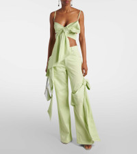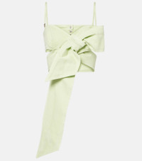 Product Details - Material: 98% cotton, 2% elastane - Care instructions: machine wash at 30 degrees - Made in Albania - Designer color name: Nile Green - Closure: button fastening - Item number: P00997451 Size & Fit - True to size - Fitted - Non-stretchy fabric - Cropped - If you wear a C cup or bigger, we recommend trying one size larger - The model seen in the picture is 178cm-5'10" and wearing a size IT 40