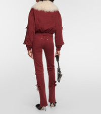 Blumarine captures the opulence of the '00s, contemporizing the Y2K aesthetic for a modern audience. This cropped denim jacket, featuring a plush shearling collar, is bound to become your fashion statement of choice. Product Details - Material: 98% cotton, 2% elastane - Closure: two-way zipped front, buckle fastening - Elasticated waistband - Elasticated cuffs - Pockets: side slit pockets - Care instructions: machine wash at 30 degrees - Made in Albania - Designer color name: Port Royale/Cammello - Material II: 100% cotton - Lining: 100% polyester - Material III: 100% polyester - Material IV: 100% shearling - Contains non-textile parts of animal origin - Item number: P00853360 Size & Fit - True to size - Dropped shoulders - Cinched waist - Elasticated hem - Mid-weight material - Cropped - The model seen in the picture is 178cm-5'10" and wearing a size IT 40