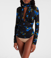 ROSE-PRINT JERSEY BODYSUIT WITH CUT-OUT
