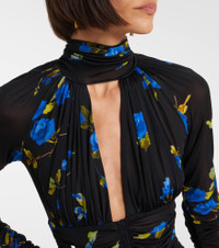 This minidress from Blumarine is crafted from second-skin jersey. This stylish design features a vibrant rose print, a high neckline with an alluring cutout and and ruched detailing on the bodice and sleeves. Product Details - Material: 90% polyamide, 10% elastane - Care instructions: machine wash at 30 degrees - Made in Italy - Designer color name: Black/Brilliant Blue - Item color: black, blue - Lining: 75% polyamide, 25% elastane - Insert: 80% polyamide, 20% elastane - Closure: zipped back - Item number: P01058503 Size & Fit - True to size - Fitted - Stretchy fabric - The model seen in the picture is 178cm-5'10" and wearing a size IT 40