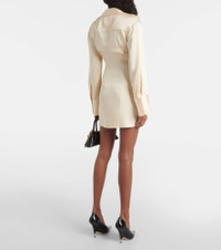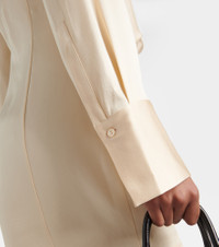 Product Details - Material: 71% acetate, 27% viscose, 2% elastane - Care instructions: dry clean - Made in Italy - Designer color name: Angora - Closure: zipped side, partially button-down - Cuff: one button - Item number: P00894165 Size & Fit - True to size - Loose bodice, fitted skirt - Non-stretchy fabric - The model seen in the picture is 178cm-5'10" and wearing a size IT 40