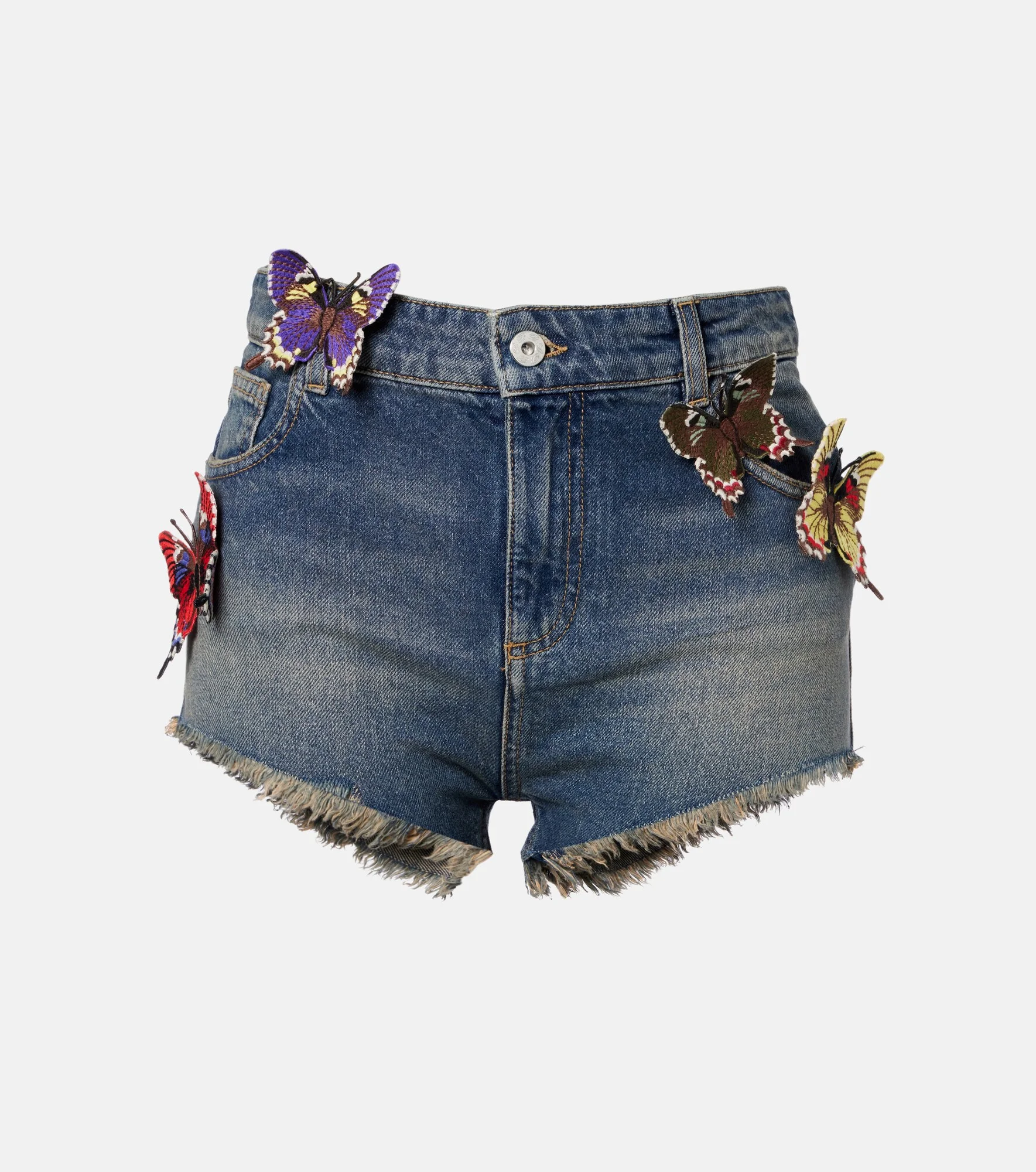 Blumarine captures the opulence of the '00s, contemporizing the Y2K aesthetic for a modern audience. These shorts are made from blue cotton denim and detailed with embroidered details. Product Details - Material: 100% cotton - Care instructions: hand wash - Made in Albania - Color: blue - Designer color name: Ice Blue - Material II: 65% polyester, 35% cotton - Trim: 100% polyester - Pockets: five pockets - Closure: zipper fly, button fastening - Belt loops - Item number: P01160429 Size & Fit - True to size - Non-stretchy fabric - Slim-leg - The model seen in the picture is 178cm-5'10" and wearing a size IT 40