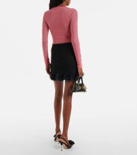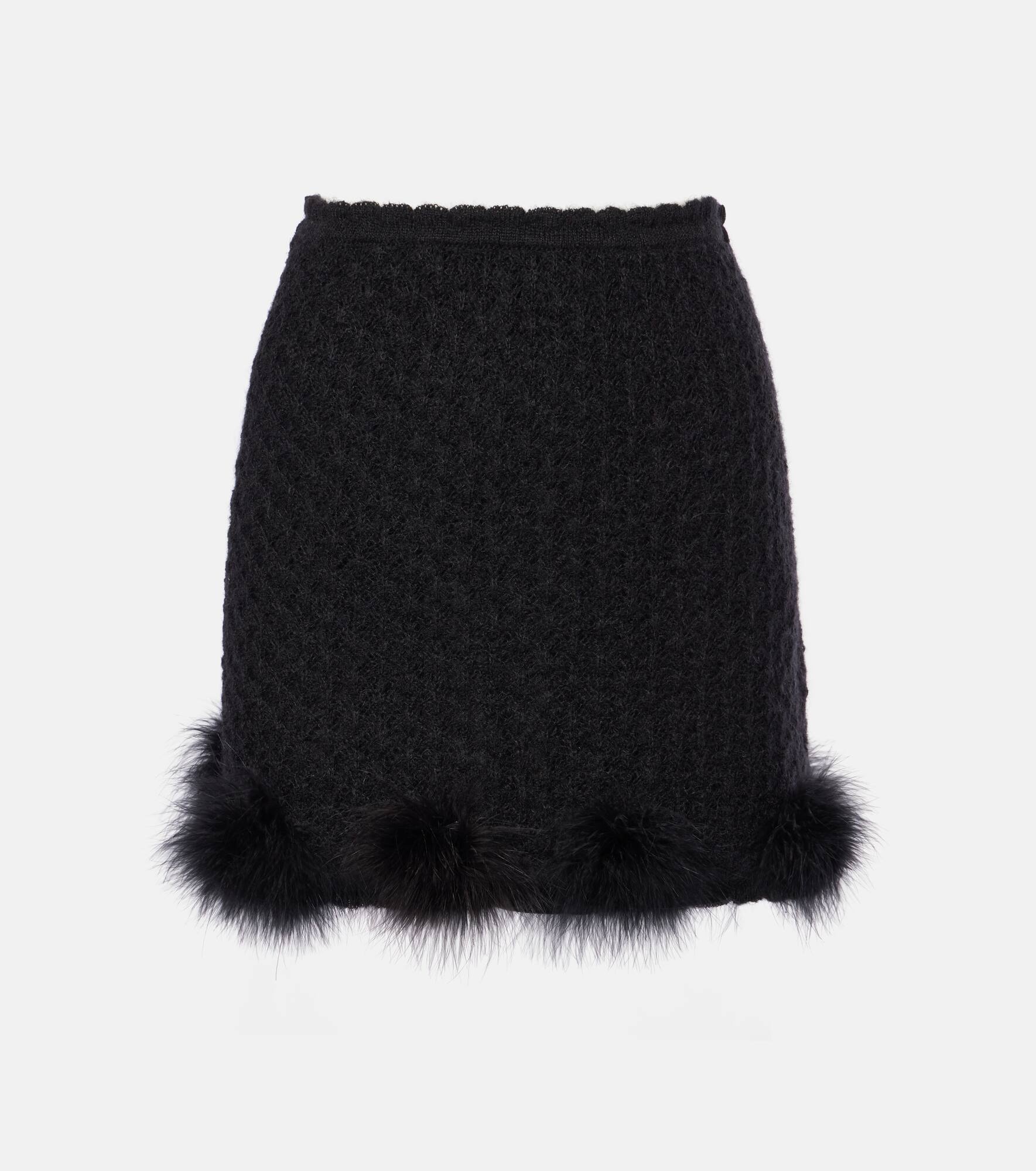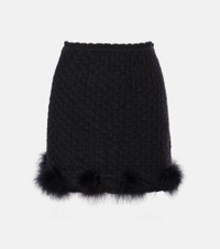 Feather-trimmed knitted miniskirt
