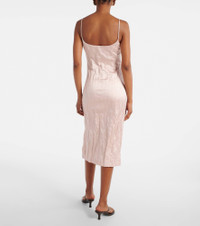 Feminine, nostalgic, and undeniably glamorous, this midi dress from Blumarine captures the opulence of the '00s while contemporizing the Y2K aesthetic. Made from wrinkled satin and adorned with floral-applique on the strap, it features a thigh-high slit for an alluring finish. Product Details - Material: 53% viscose, 36% cotton, 11% metallic fibres - Care instructions: dry clean - Made in Portugal - Designer color name: Powder Pink - Item color: pink - Closure: zipped side - Lining: 100% polyester - Item number: P01038718 Size & Fit - True to size - Straight fit - Non-stretchy fabric - The model seen in the picture is 178cm-5'10" and wearing a size IT 40
