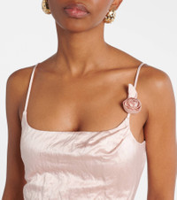 CRINKLED SATIN DRESS WITH 3D ROSES