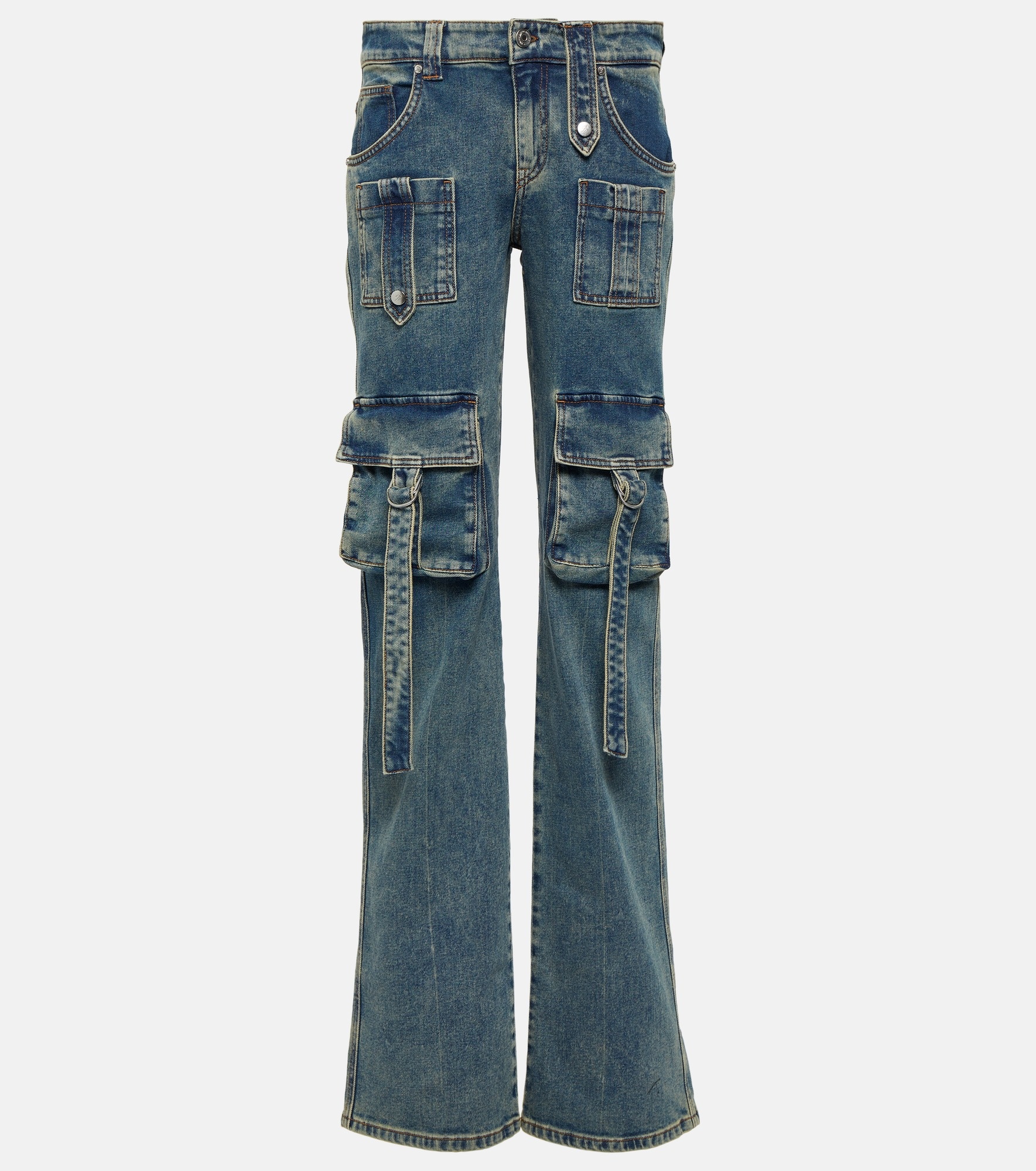 Blumarine captures the opulence of the '00s, contemporizing the Y2K aesthetic for a modern audience. These cargo pants are made from denim with a low-rise waist and utilitarian pockets along the relaxed legs. Product Details - Material: 98% cotton, 2% elastane - Belt loops - Care instructions: machine wash at 30 degrees - Made in Albania - Material II: 65% polyester, 35% cotton - Closure: zipper fly, button fastening - Pockets: five pockets, patch pockets, cargo pockets - Item number: P00832484 Size & Fit - True to size - Mid-weight material - Slightly stretchy fabric - Straight leg - Low-rise - The model seen in the picture is 178cm-5'10" and wearing a size IT 40