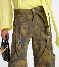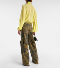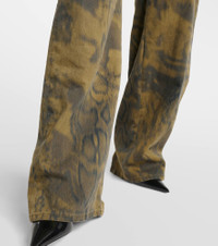 Printed denim wide-leg pants
