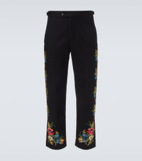 With the sole mission of telling stories through fashion, Bode creates nostalgic styles using historical techniques and vintage patterns. The Beaded Aquitaine pants are made from felted wool and feature floral and geometric embellishments inspired by a folk tablecloth. Product Details - Material: 100% wool - Care instructions: dry clean - Made in India - Designer color name: Black - Item color: black - Lining: 100% viscose - Closure: zipper fly, button and hook fastenings - Pockets: slant pockets, back pockets - Adjustable tabs at the waist - Item number: P01049163 Size & Fit - True to size - Non-stretchy fabric - Straight leg - The model in the picture is 185cm-6'1" and wearing a size 32