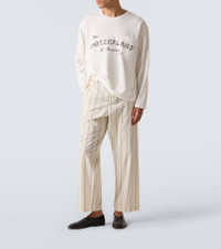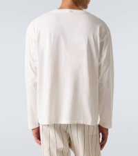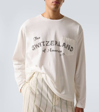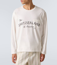 The Campground long-sleeved T-shirt from Bode is made from soft cotton jersey. The design showcases the original advertising slogan from an American summer camp, a casual crewneck, and a chest pocket. Product Details - Material: 100% cotton - Care instructions: machine wash cold - Made in Portugal - Designer color name: Cream - Item color: white - Collar: crewneck - Pockets: breast pocket - Item number: P01049130 Size & Fit - True to size - Dropped shoulders - Designed for a loose fit - Slightly stretchy fabric - Falls to the hip - Falls below the hip - Height of model is 188cm-74" and wears a size L