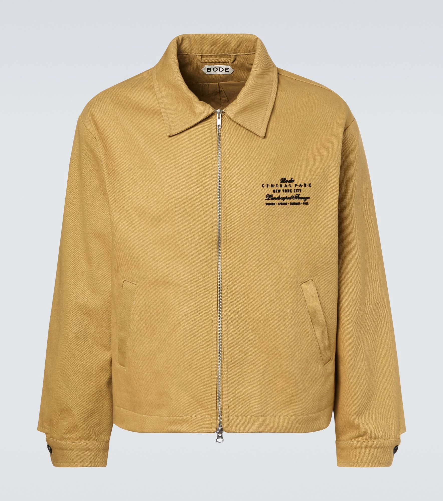 With the sole mission of telling stories through fashion, Bode creates nostalgic styles using historical techniques and vintage patterns. Made from cotton, the Central Park blouson jacket is characterized by its vintage-inspired print on its back, which pays homage to the beloved New York landmark. Product Details - Material: 100% cotton - Care instructions: dry clean - Made in India - Designer color name: Ocre - Item color: yellow - Hardware color: silver - Collar: classic (Straight point) - Cuff: buttoned - Pockets: welt pockets - Closure: two-way zipped front - Item number: P01049114 Size & Fit - True to size - Straight fit - Non-stretchy fabric - Falls to the hip - The model in the picture is 185cm-6'1" and wearing a size L