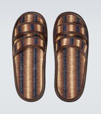 With the sole mission to tell stories through fashion, Bode creates nostalgic styles using historical techniques and vintage patterns. Perfect for your vacation edit, the Duotone slides feature cheerful woven straw uppers with leather soles. Product Details - Upper: straw - Comes with a box - Comes with dust bag - Lining: leather - Sole: jute insole, rubber sole - Designer color name: Brown Blue - Toe shape: round open toe - Made in Portugal - Trim: leather - Item number: P00780937 Size & Fit - True to size - Half sizes please take the next size up - European sizes