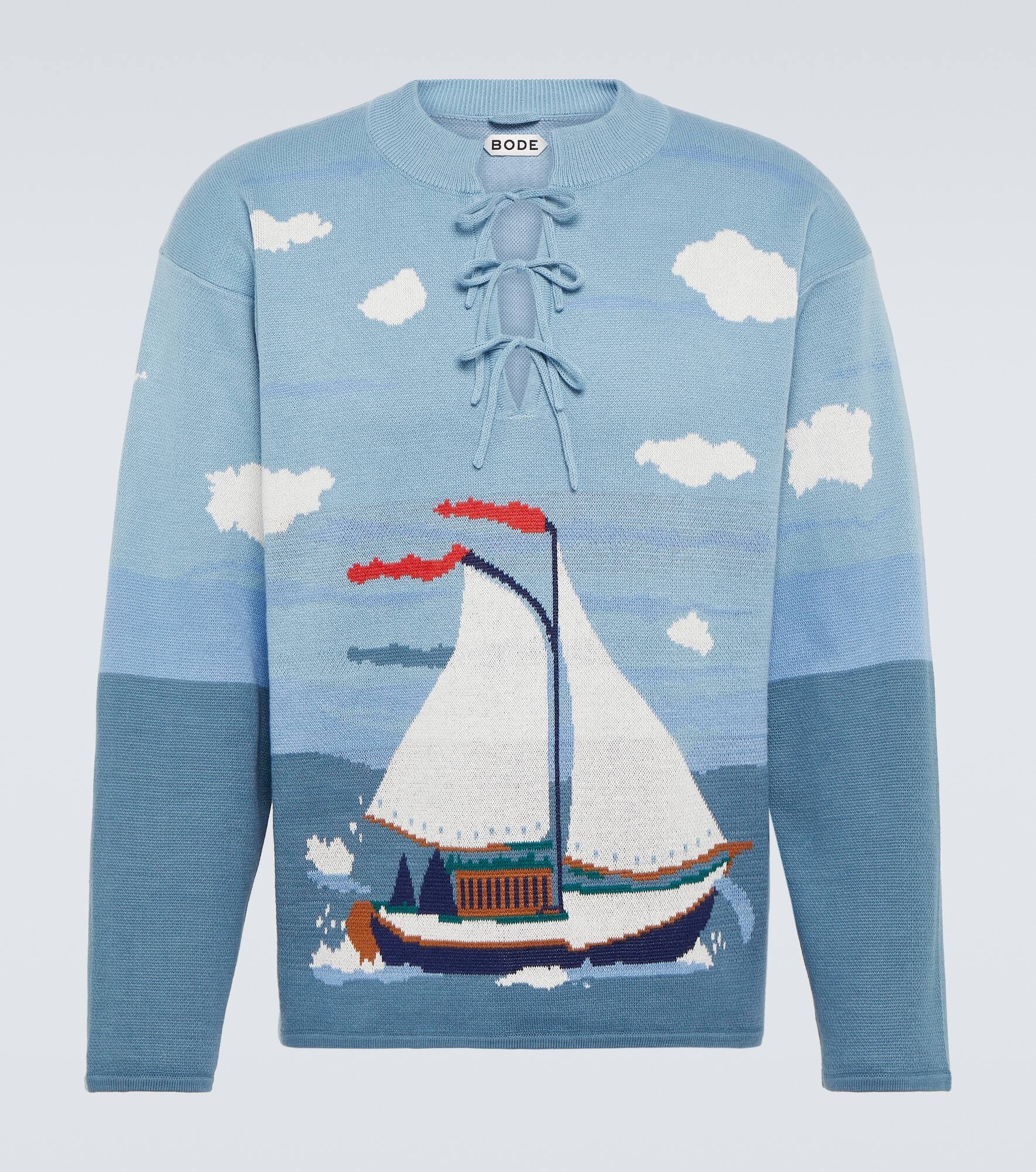 Pinafore bow-detail cotton jacquard sweater