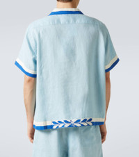 Seedling Stripe Camp-Collar Appliquéd Linen Shirt