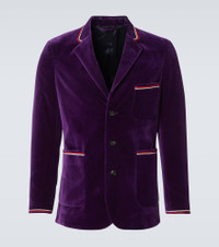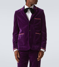 Showcase Soutache-Trimmed Cotton-Velvet Suit Jacket Purple
