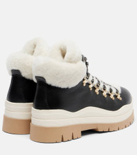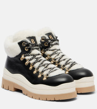 Bogner has revolutionized skiwear with time-tested designs that seamlessly transition from the slopes to the chalet. Made in Italy from black leather with plush shearling lining, the Arosa boots are a lace-up style with gold-toned hardware and rounded toes. Product Details - Upper: calf leather - Lining: shearling - Sole: shearling insole, rubber sole - Toe shape: round toe - Made in Italy - Includes: shoe box, dust bag - Designer color name: Black - Item color: black, white - Trim: shearling - Hardware color: gold - Closure: lace-up - Item number: P01117934 Size & Fit - True to size - European sizes - 3cm-1" platform (size EU 38) - 4cm-1.5" wedge heel (size EU 38)