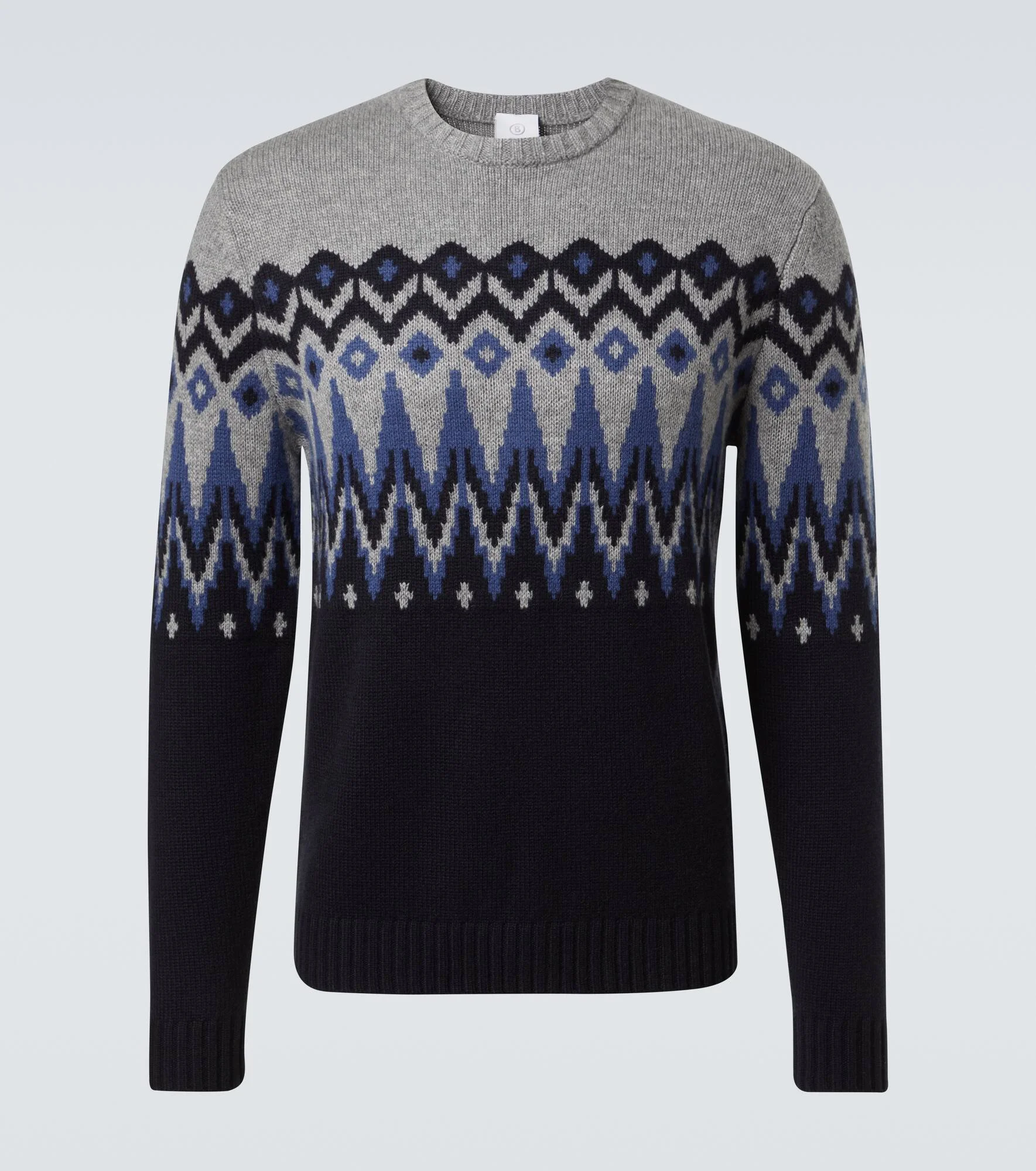 Bogner has long been the go-to brand for mountain-ready designs. Made from soft cashmere, the Ron sweater features a Fair Isle jacquard pattern and ribbed-knit trims. Product Details - Material: 100% cashmere - Care instructions: hand wash - Made in China - Color: multicoloured - Designer color name: Grey/Blue/Navy - Item color: gray, blue - Collar: crewneck - Cuff: ribbed - Hem: ribbed - Item number: P01092716 Size & Fit - True to size - Straight fit - Slightly stretchy fabric - Falls to the hip - The model in the picture is 185cm-6'1" and wearing a size L