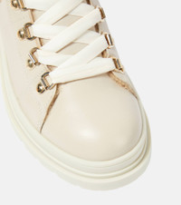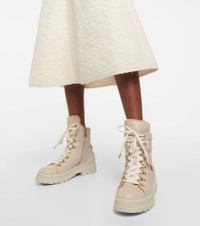 Elevate your winter stride in Bogner's leather boots. These lace-up wonders seamlessly merge style and comfort, featuring a delightfully cozy shearling lining and removable ice spike technology for maximum traction. Product Details - Upper: calf leather - Lining: shearling - Sole: shearling insole, rubber sole - Toe shape: round toe - Made in Italy - Includes: shoe box, dust bag - Designer color name: Beige - Closure: lace-up, zipped side - Item number: P00872786 Size & Fit - True to size - Narrow fit due to lining - European sizes - 3cm-1" heel (size EU 38) - 2,5cm-1" platform (size EU 38)
