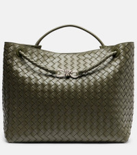 Developed in the 1970s, Bottega Veneta's artful Intrecciato technique guarantees the longevity of its leather goods. Woven from supple leather, the Andiamo tote bag features signature knot detailing and a top handle alongside a shoulder strap. Product Details - Material: leather (nappa) - Lining: leather - Made in Italy - Designer color name: Pickel-Vin Si-Pickle - Item color: green - Closure: magnetic fastening - Top handle, Shoulder strap - Hardware color: silver - Item number: P01117827 Size & Fit - Length 33cm-13" - Width 41cm-16" - Depth 20,5cm-8" - Length of handle 31cm-12" - Min. length shoulder strap 65cm-25.5" - Max. length shoulder strap 100cm-39.5"