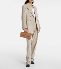 The Andiamo clutch from Bottega Veneta is crafted in Italy from leather using the brand’s signature Intrecciato technique. Developed in the 1970s, this artisanal weaving method ensures the durability and timeless appeal of its leather goods. Product Details - Material: lamb leather - Lining: leather - Made in Italy - Designer color name: Biscuit-M Brass - Item color: beige - Hardware color: gold - Top handle - Internal details: internal slot pocket, Card slots, single compartment - Closure: push-stud fastening tab - Includes: dust bag - Item number: P01097445 Size & Fit - Height 13cm-5" - Width 30,5cm-12" - Depth 3,5cm-1.5" - Length of handle 15cm-6"